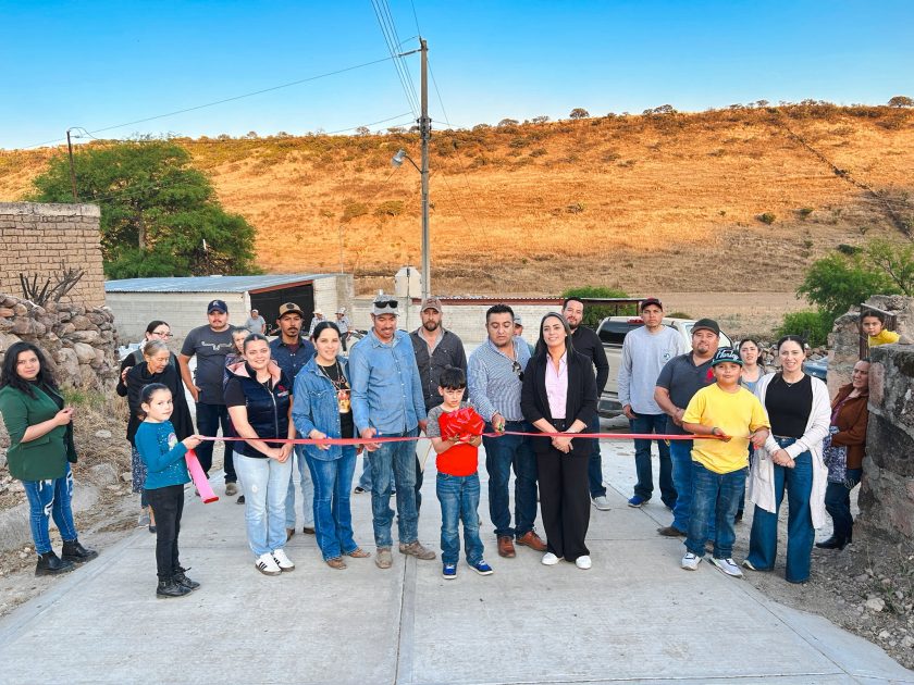 Ciénega de Room, Monte Escobedo, Zac.- Continuando con el programa de pavimentación, bajo el esquema 50/50 que ha implementado el gobierno municipal que encabeza el alcalde Manuel Acosta Galván, autoridades y vecinos realizaron el tradicional corte de listón de las siguientes obras: